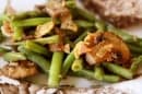 Загрейте зехтина в тиган и изпържете гъбите, докато станат златисти - около 3-4 минути. Прехвърлете ги в чиния.
