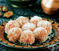 Необходими продукти: 400 грама моркови 400 грама кафява захар 1/2 чаша орехи 1 чаша кокосови стъргот...
