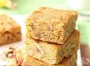 Комбинирайте разтопеното краве масло, яйцата и бадемовия екстракт и изсипете в купата със сухите съставки, добавете парченцата круша и разбъркайте. Изсипете сместа в приготвената тавичка и печете 45 минути. След това покрийте с фолио и печете още 20 минути или до готовност. Охладете в тавичката за 1 нощ.