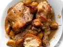 - Печено пиле с червено вино, домати и чесън