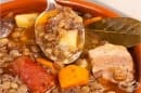 - Шарен боб в гювеч с бекон и чесън