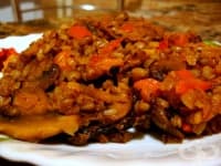 Необходими продукти: 200 г боб 750 мл вода 1 глава лук 1 морков 1 чушка 2 с. л. доматено пюре 1 с. л...
