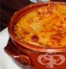 В дълбока купа смесете настърганите кашкавал и топено сирене.