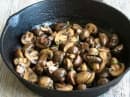 Отрежете "крачетата" на гъбите и ги нарежете ситно.