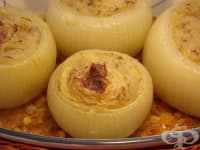 Необходими продукти: 8 големи глави лук 300 грама кайма 3 супени лъжици сварен ориз 100 грама кашкав...