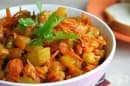 Сварете ориза до готовност в подсолена вода. Сушените плодове накиснете за половин час във вода, след което я отцедете и налейте коняка.