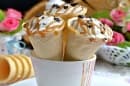 Върху сладоледа сложете единия блат – с неравната страна нагоре – обърнете сладоледа върху блата и свалете хартията. Отгоре поставете втория блат, бъдете внимателни да не се разчупят целувките.